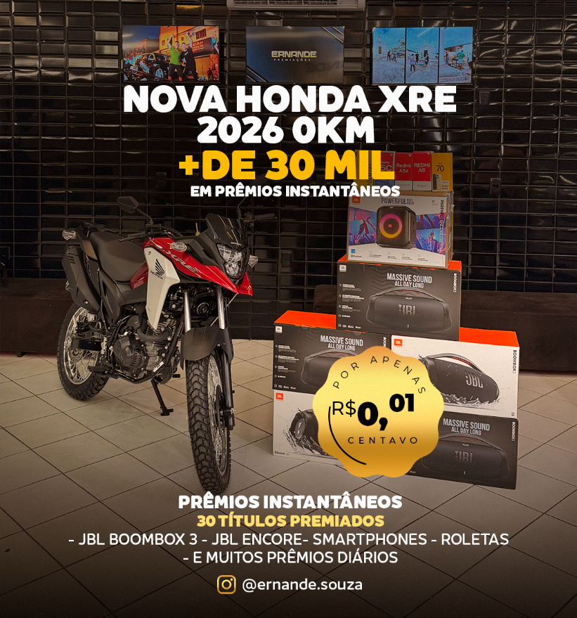 NOVA HONDA XRE 2026 ZERO KM + 30 mil em PRÊMIOS